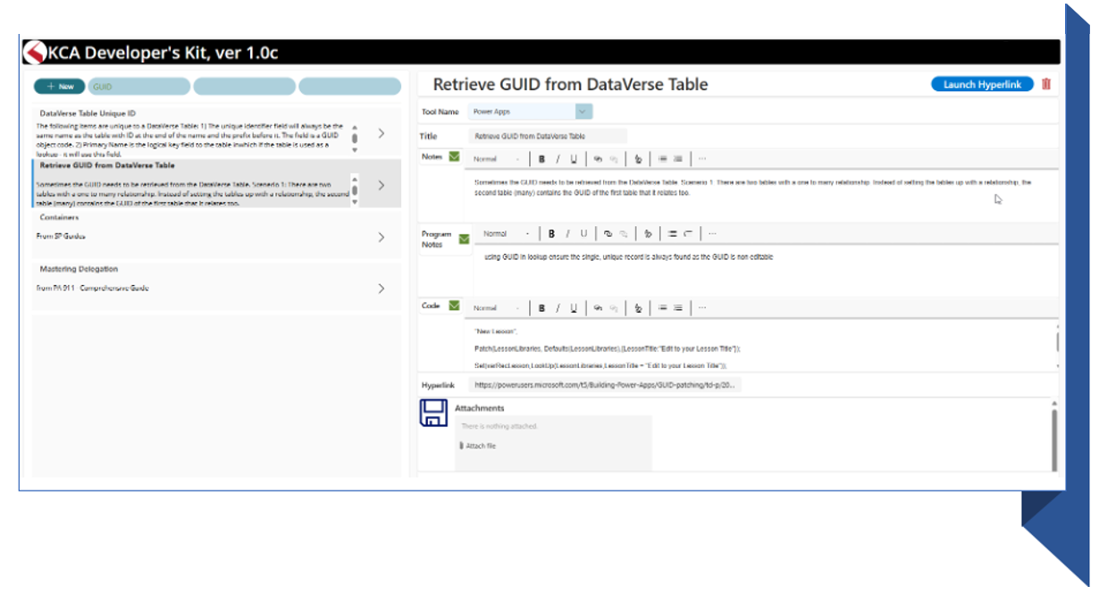 The KCA Developer's Kit provides a place to store the information you've gathered and wish to keep as at your fingertips.